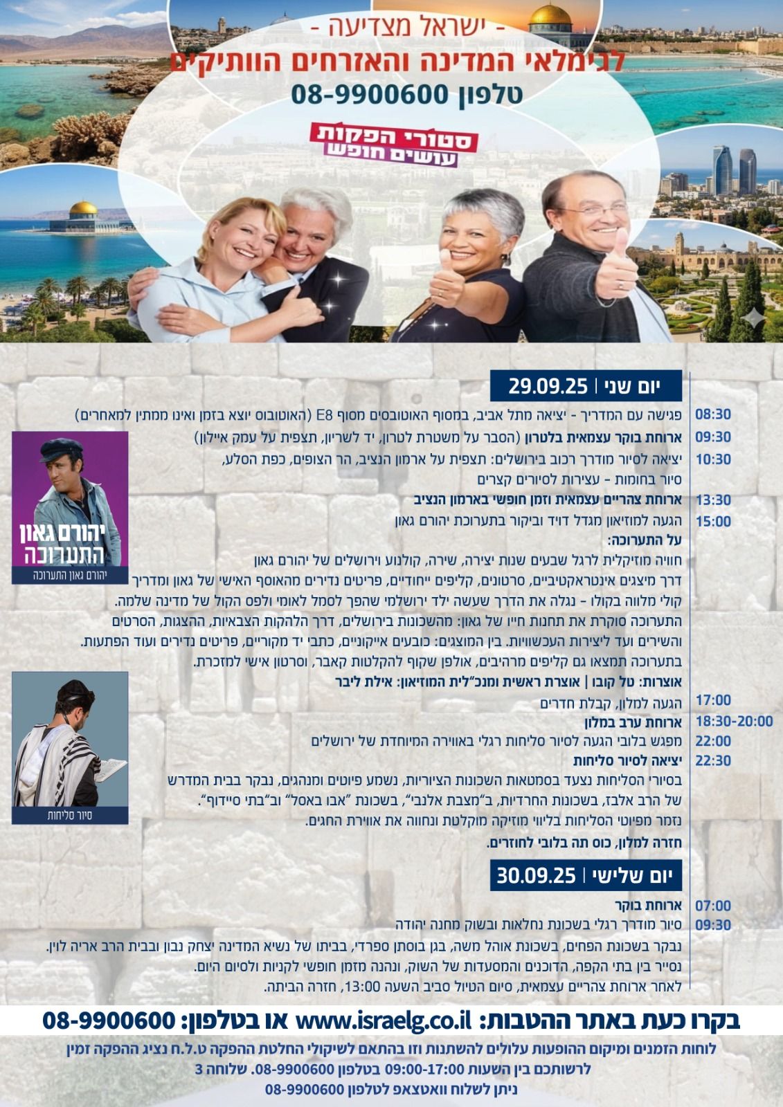 ⏰ שעת יציאה: 08:30 בדיוק! ❗ האוטובוס יוצא בזמן ואינו ממתין למאחרים – אנא הקפידו להגיע לפחות 15 דקות מראש